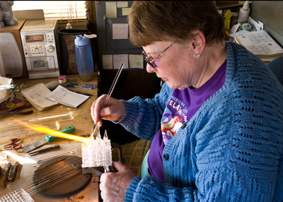 Due to fire regulations Marge can't work inside her house. Her workshop is a converted travel trailer.